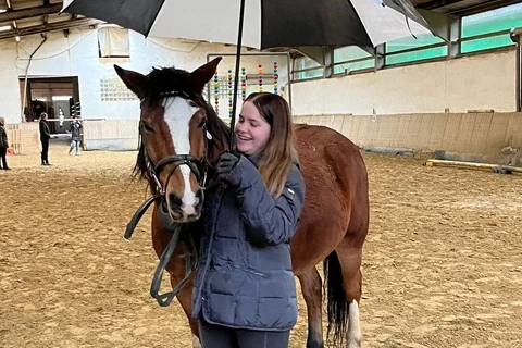 Angeleitet von den Reitlehrerinnen Anja und Yvonne lernten die Reitschüler die einzelnen Stationen kennen. Mit Hilfe ihrer Körpersprache und guten Gedanken führten sie ihre Ponys durch Vorhänge, über Planen und andere schreckeinflößende Dinge. Das ist gar nicht so leicht, denn als Fluchttiere nähern Pferde sich Unbekanntem mit Vorsicht und können sich erschrecken.